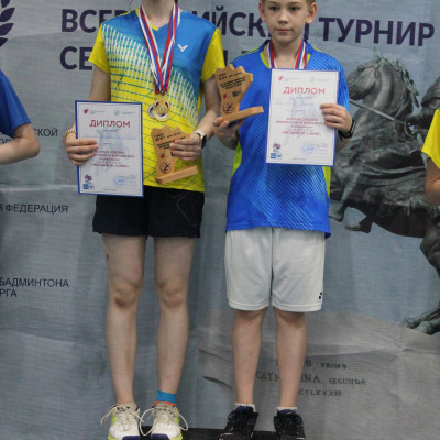 Кель Родион, в возрастной категории до 13 лет, также стал двукратным обладателем золота турнира – в смешанном парном разряде и мужской паре, но и в личном зачете смог добраться до пьедестала, став бронзовым призером.