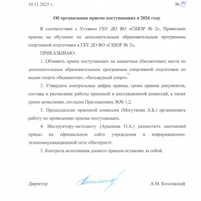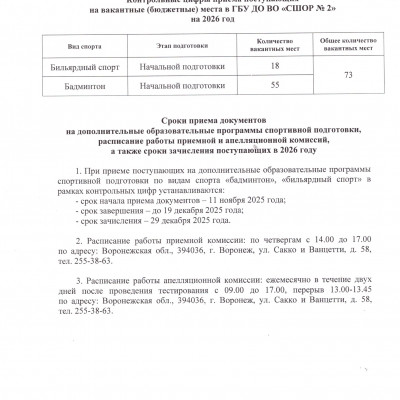 Объявлен индивидуальный отбор для зачисления в СШОР № 2 в 2026 году за счет субсидий из бюджета Воронежской области